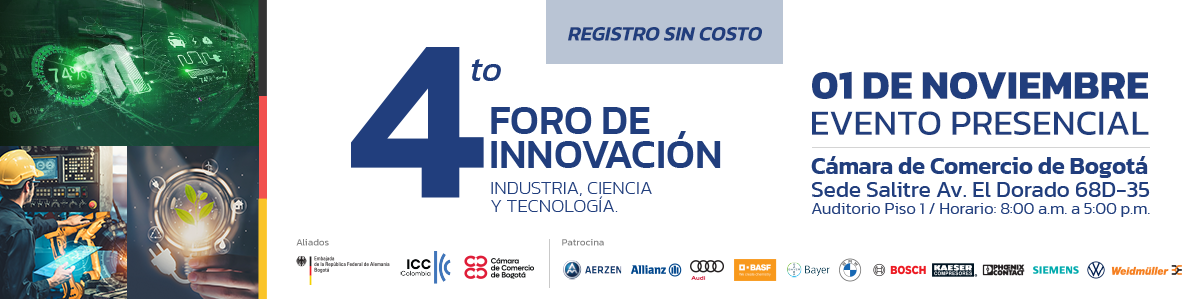 Al registrar su información autoriza a la Cámara de Comercio de Bogotá - CCB, identificada con el NIT. 860.007.322-9, ubicada en Bogotá - Colombia en la Avenida el Dorado No. 68 D - 35, teléfono 601 3830330 y página web: www.ccb.org.co, y La Cámara de Industria y Comercio Colombo-Alemana, identificado con el NIT: 8600065981 de Colombia, domiciliado y ubicado en Bogotá, Cra. 13 #93-40 Piso 4 teléfono 601 6513777 y página webhttps://www.ahk-colombia.com/es/ para que como responsables del tratamiento de datos personales los recolecten, almacenen, usen y circulen para: a) inscribirse y registrar la asistencia al evento, b) enviar información o memorias del evento según corresponda, c) medir el evento y la satisfacción por su participación, d) preinscribir, invitar o enviar comunicaciones de los eventos y servicios de los responsables, e) permitir el registro fotográfico y audiovisual durante el evento, con el fin de registrarlo y publicarlo, así como noticias en los diferentes medios de comunicación, en portales y en redes sociales de los responsables. En todo caso, los responsables respetarán los derechos de autoría y propiedad intelectual de las piezas utilizadas en material promocional o publicitario, sin que esto suponga retribución y/o compensación económica alguna, f) compartir los datos internacionalmente entre las partes y con sus proveedores, g) generar análisis, informes y estadísticas. Estas finalidades se podrán realizar a través de medios físicos, digitales, electrónicos o telefónicos. Usted podrá consultar la Políticas de Protección de Datos Personales en www.ccb.org.co/protecciondedatospersonales y La Cámara de Industria y Comercio Colombo-Alemana en https://www.ahk-colombia.com/es/politica-de-tratamiento-y-proteccion-de-datos. Para resolver dudas e inquietudes relacionadas con el tratamiento de los datos, presentar sus solicitudes y/o ejercer sus derechos puede escribir a la CCB a los correosprotecciondedatos@ccb.org.co y/o johana.gomez@ahk-colombia.com en cumplimiento con lo descrito en el Artículo 2.2.2.25.4.1 del Decreto 1074 de 2015 de Colombia. Sus derechos como titular de datos personales son: (i) Acceder en forma gratuita a los datos proporcionados que hayan sido objeto de tratamiento. (ii)Conocer, actualizar y rectificar su información frente a datos parciales, inexactos, incompletos, fraccionados, que induzcan a error, o a aquellos cuyo tratamiento esté prohibido o no haya sido autorizado. (iii) Solicitar prueba de la autorización otorgada. (iv) Presentar ante la Superintendencia de Industria y Comercio (SIC) quejas por infracciones a lo dispuesto en la normatividad vigente. (v) Revocar la autorización y/o solicitar la supresión del dato, siempre que no exista un deber legal o contractual que impida eliminarlos. (vi)Abstenerse de responder las preguntas sobre datos sensibles o menores de edad.